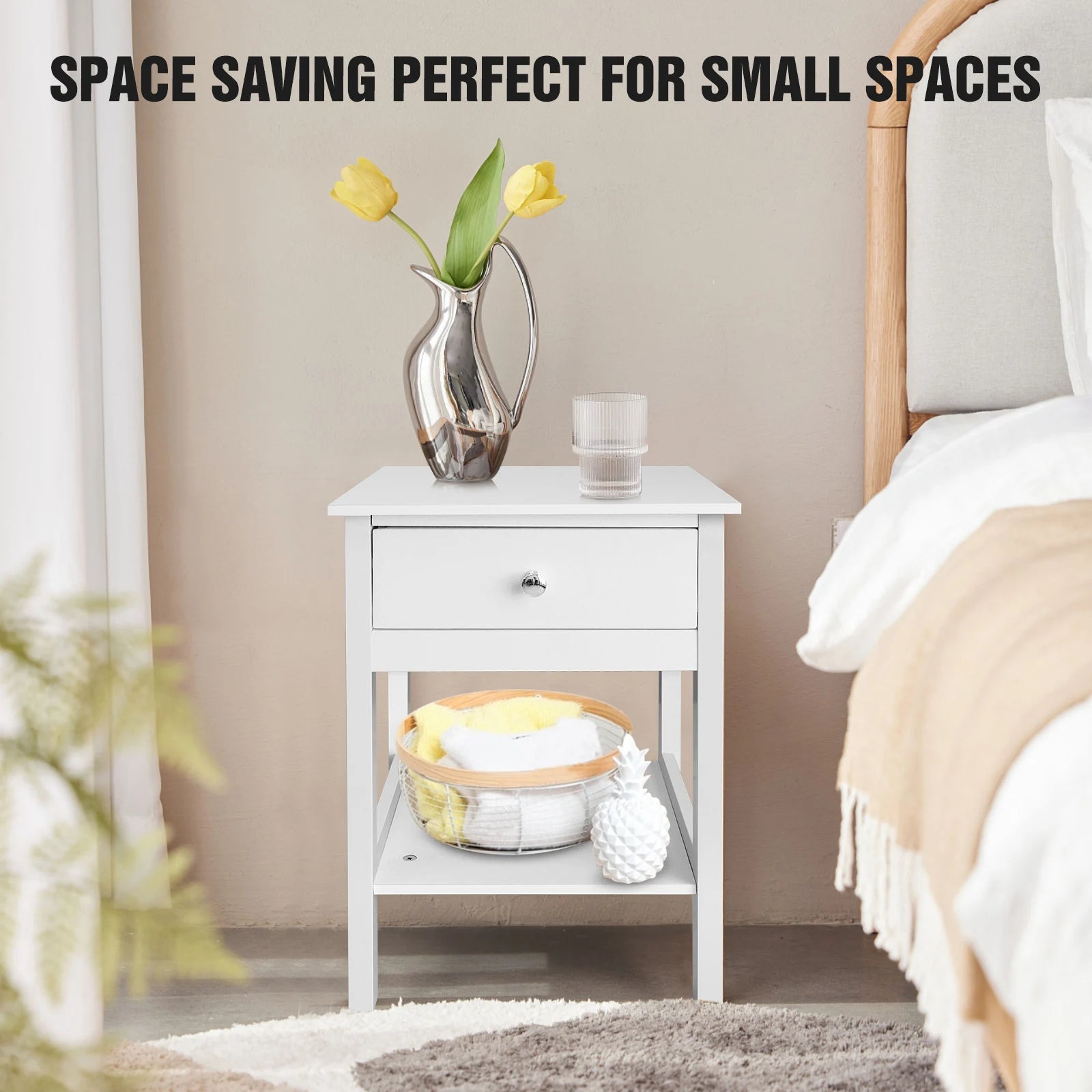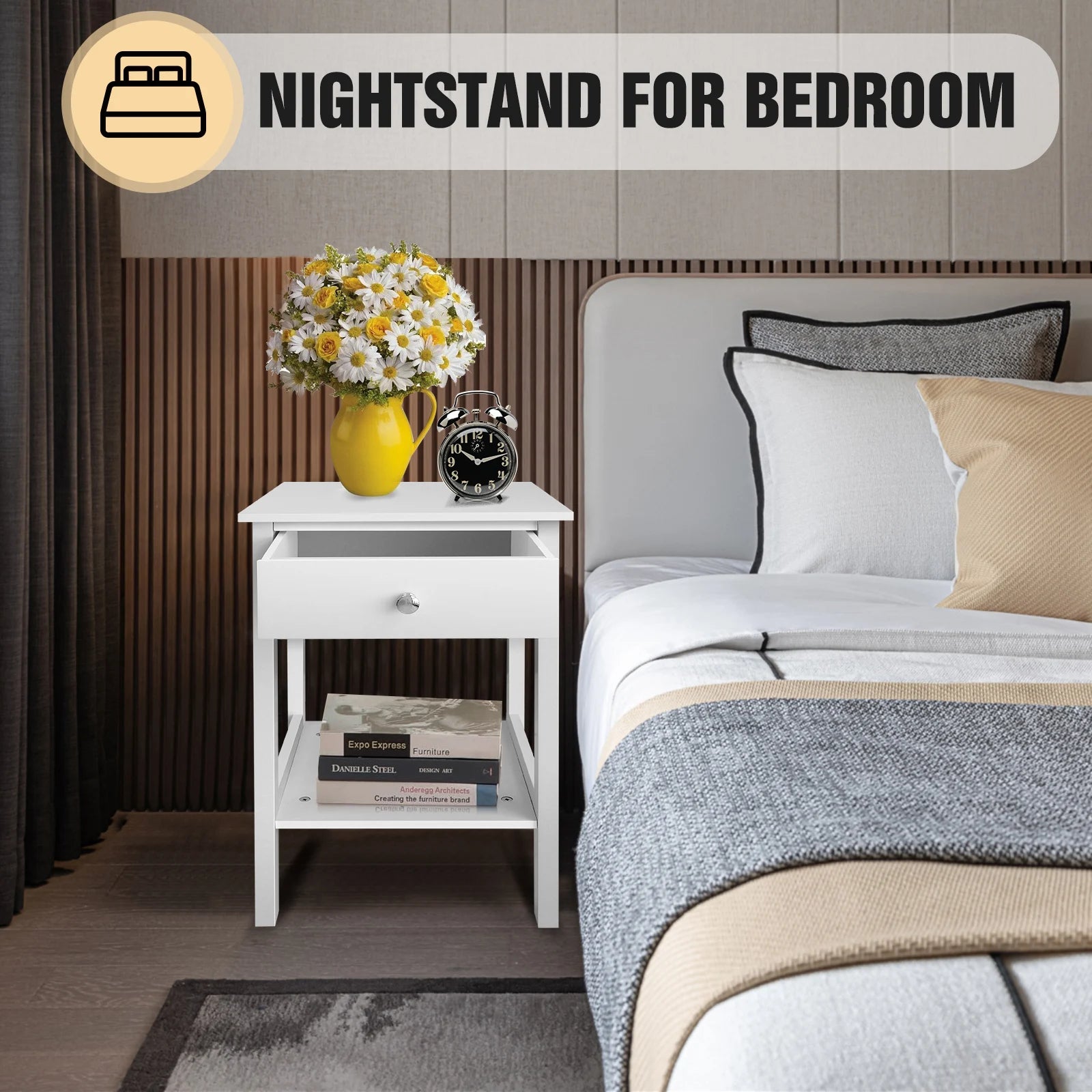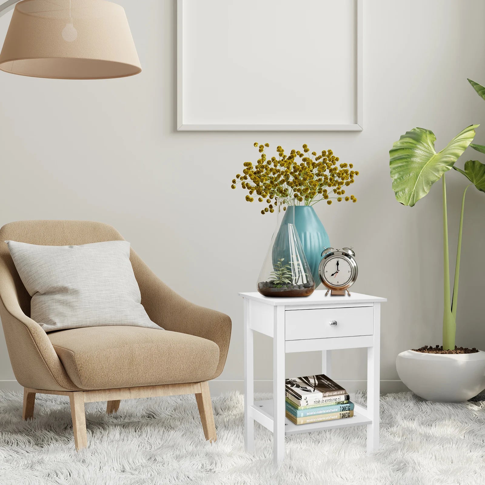 Modern Minimalist Night Stand Bedside Table with Drawer & Shelf
