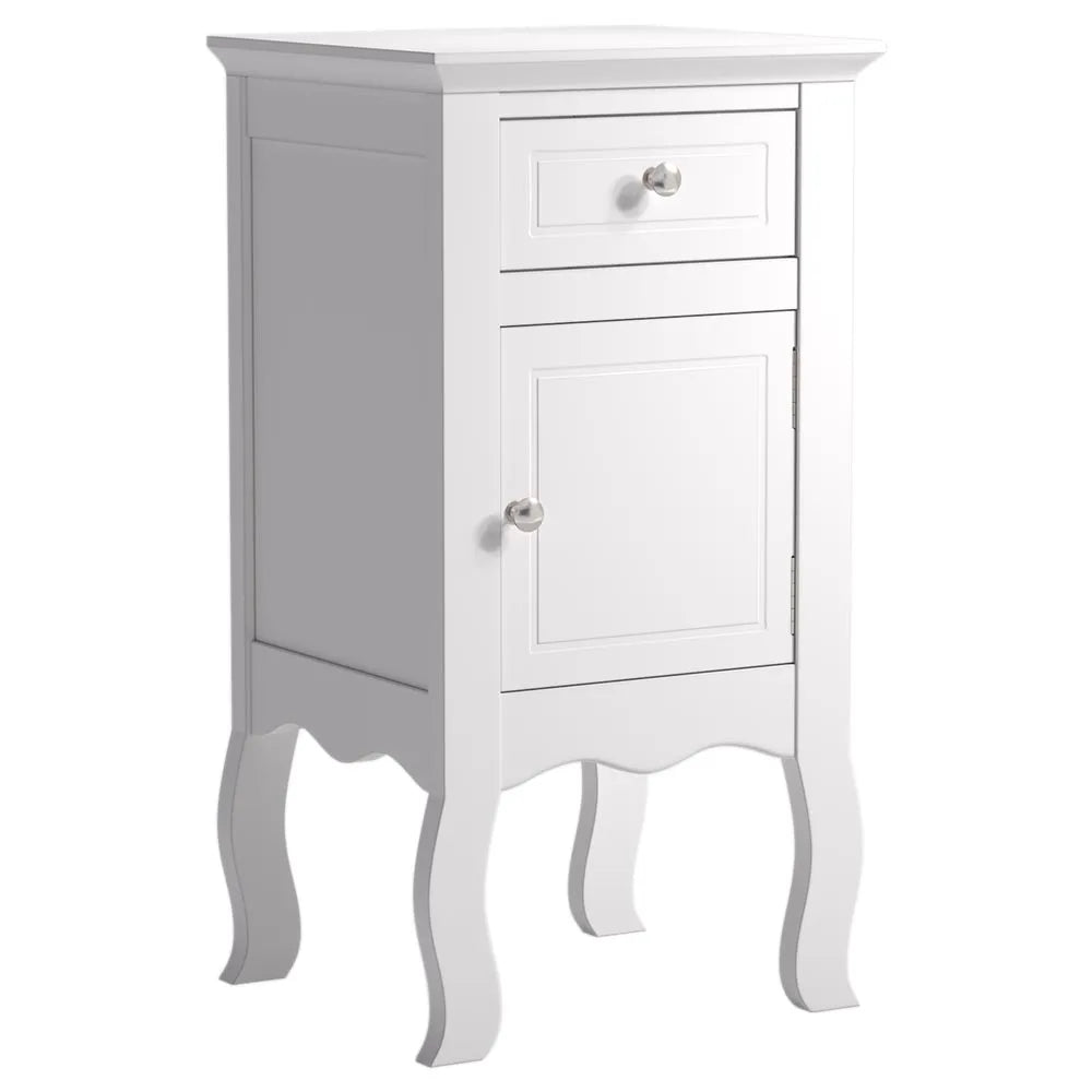 Haodirect Modern Wooden Side Table with Drawer - Curved Legs Design