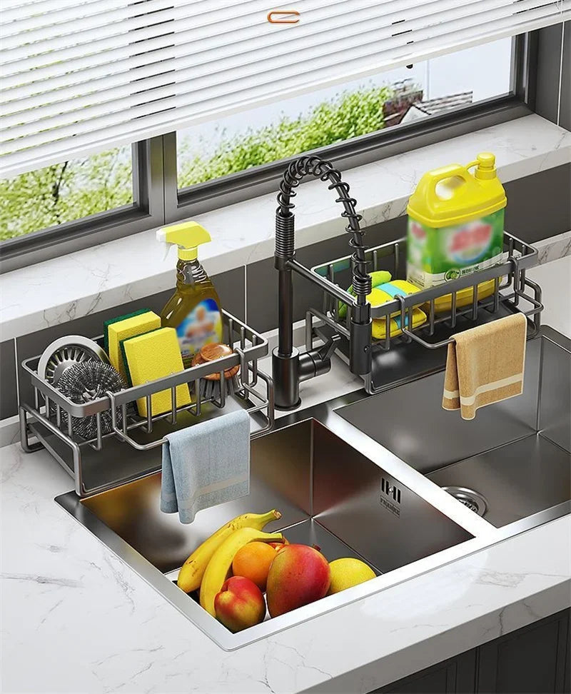 Elevate your kitchen organization with this stainless steel sink drain rack, designed to keep your detergent, sponge, rag towel,...