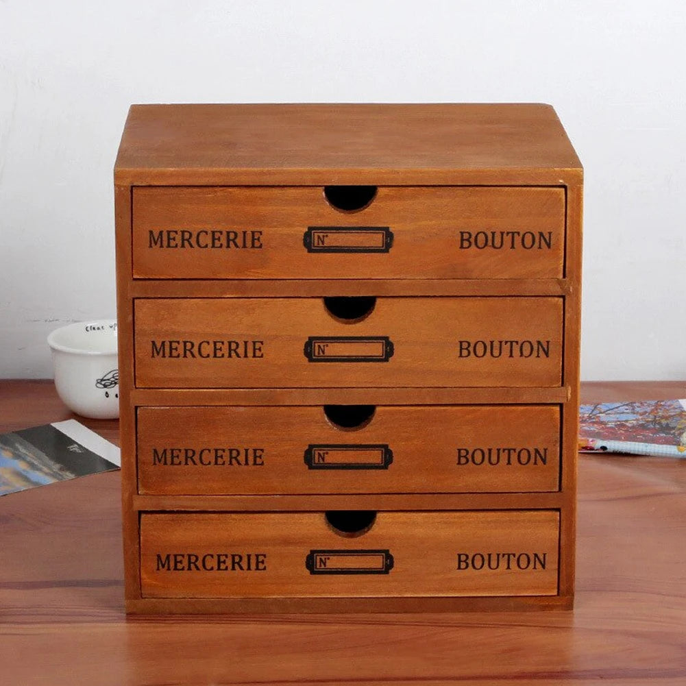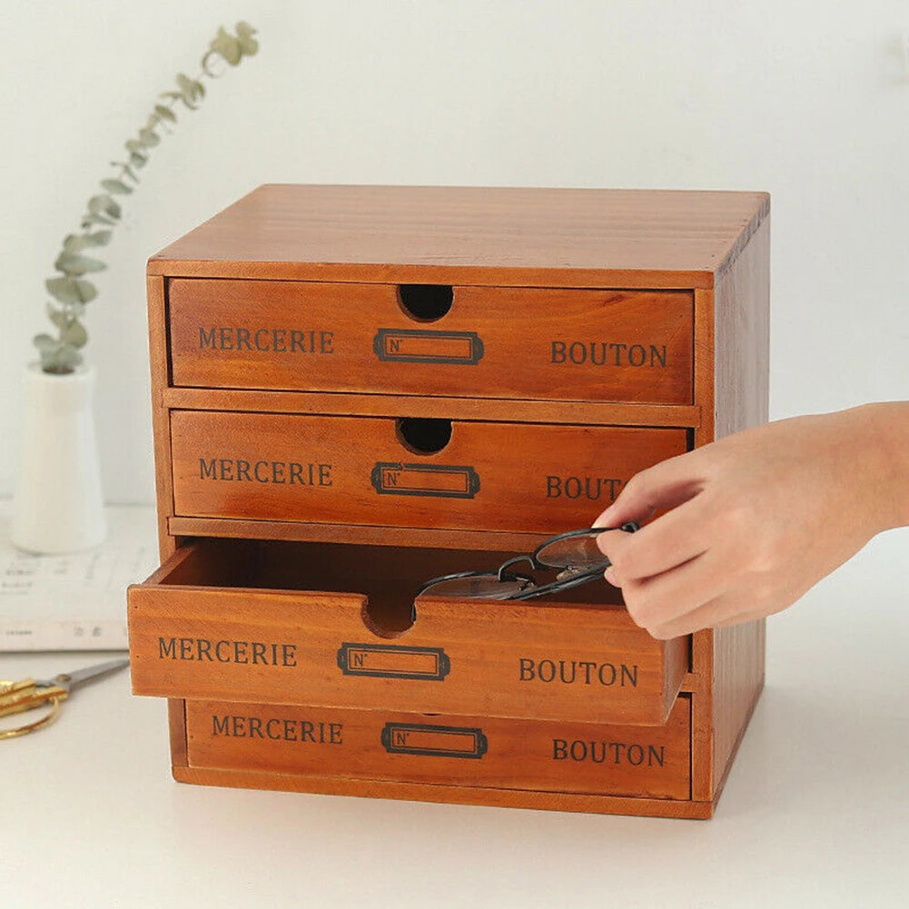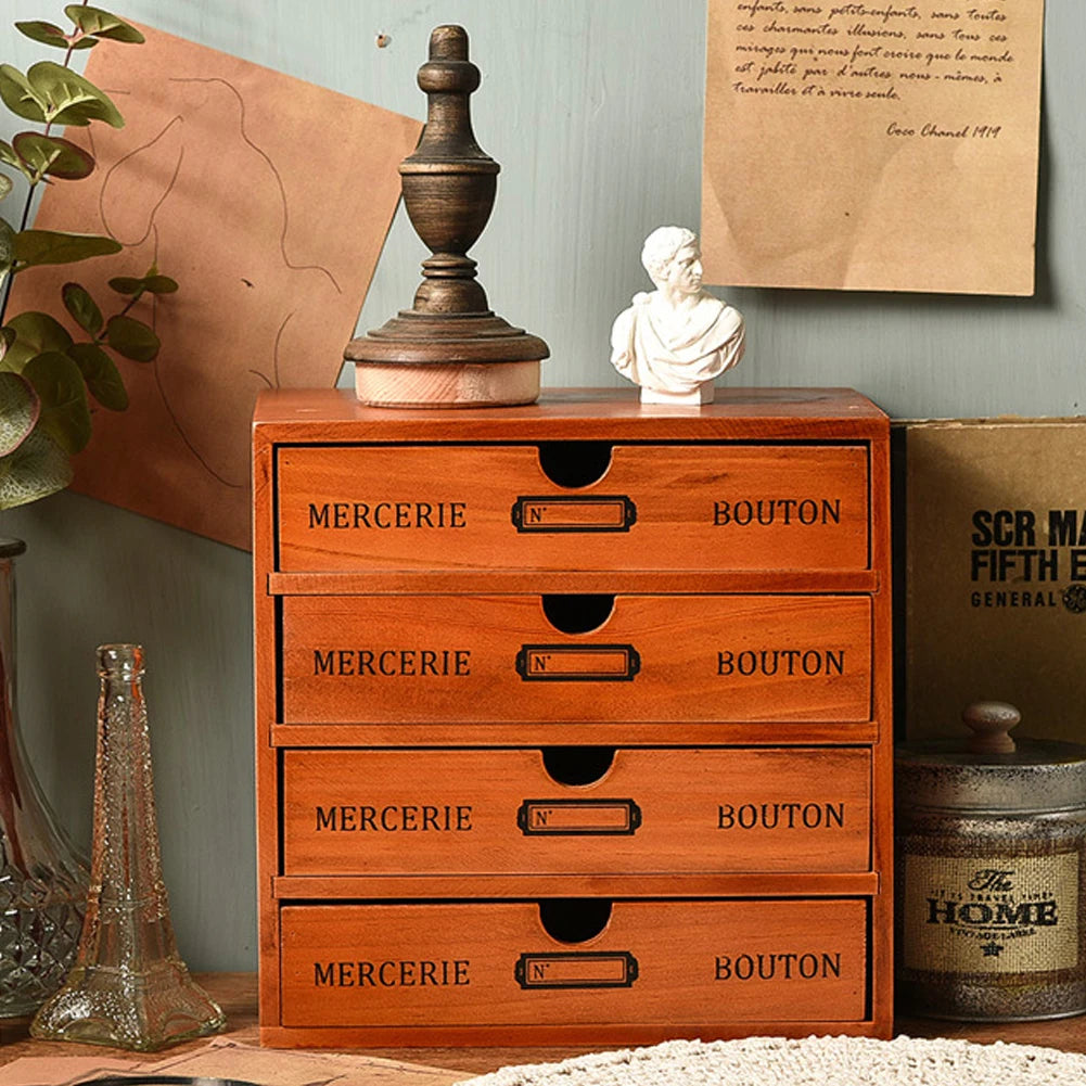 Modishion Retro Solid Wood 4 Drawer Storage Box for Jewelry & Cosmetics