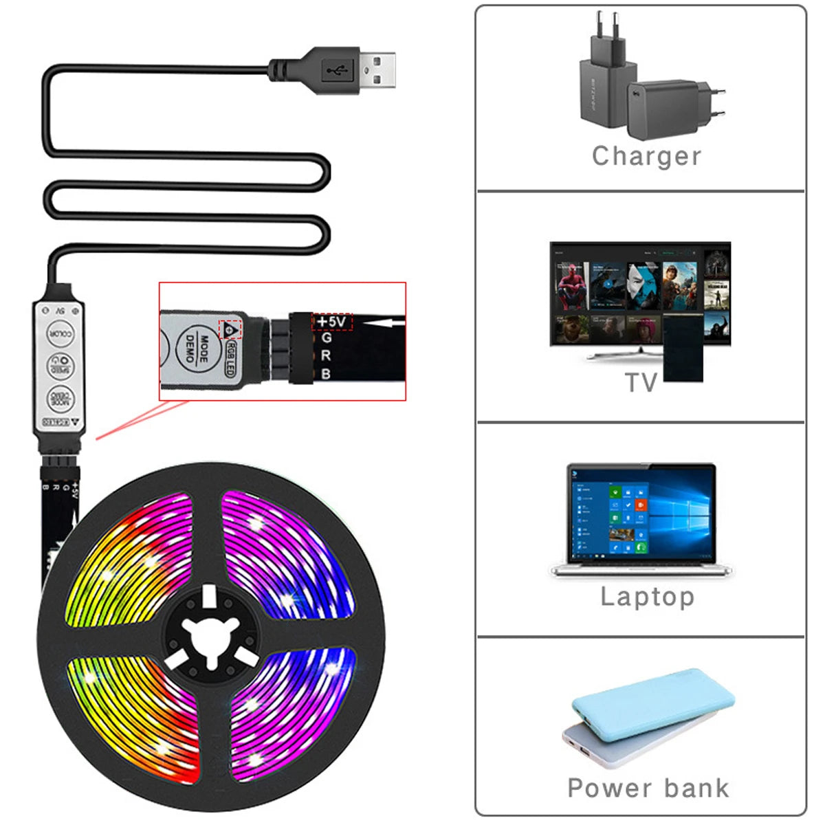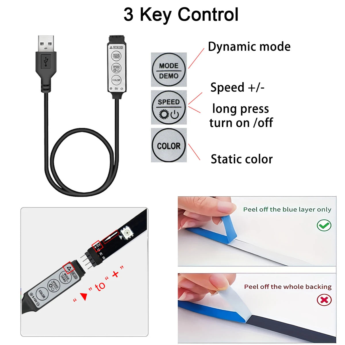 RGB USB LED Strip Light - 5050 Neon Backlight for TV & Computer