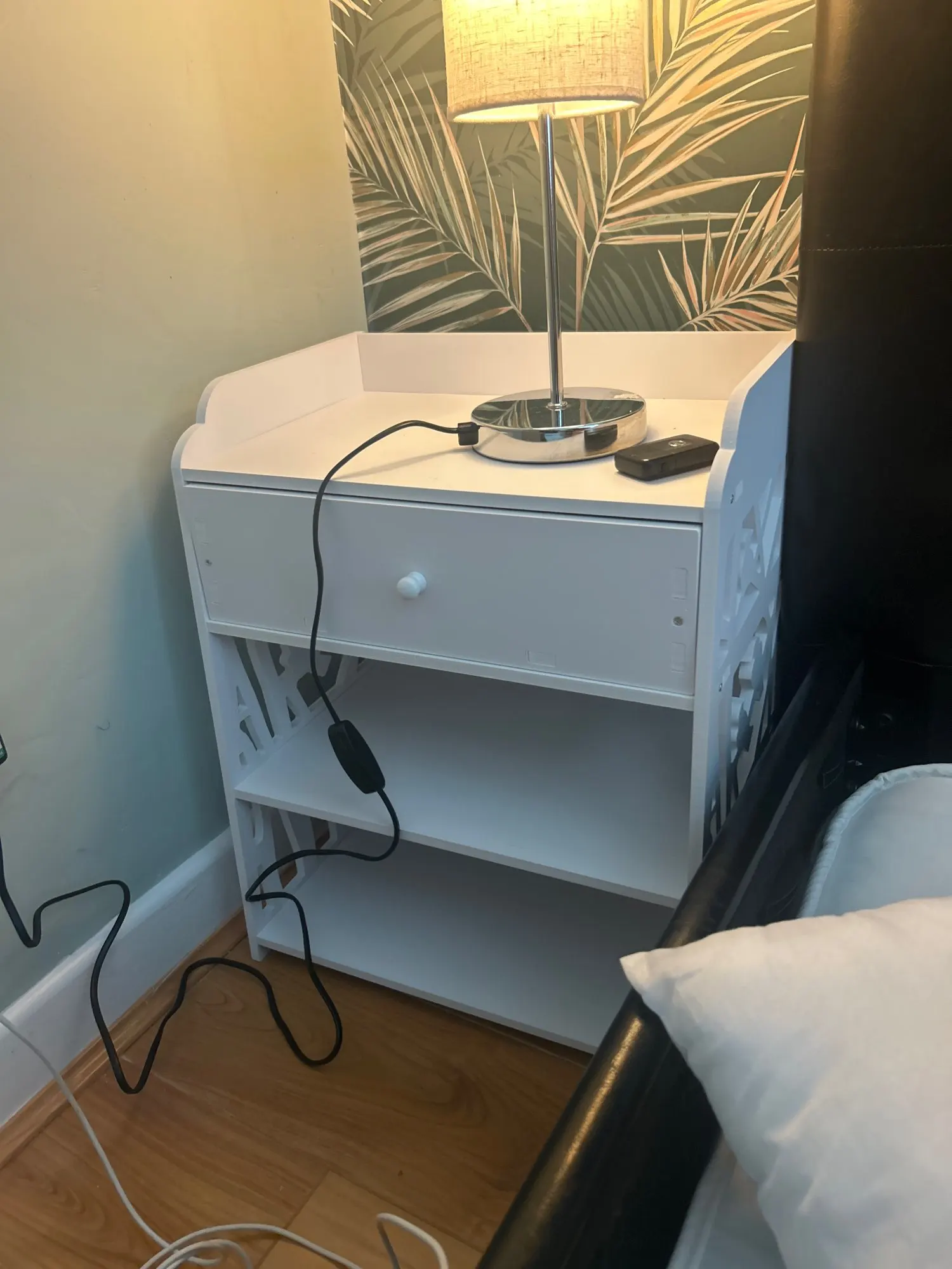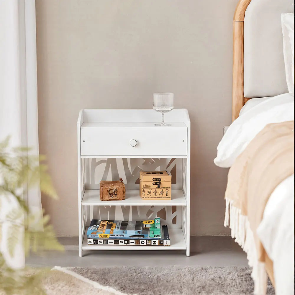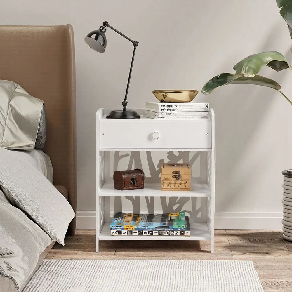Voltsify Hollow Carved Bird Pattern Nightstand - Modern Bedroom Table